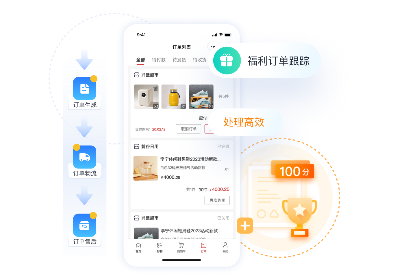 - 跟踪福利订单从生成到履约的全流程,状态清晰,处理高效。