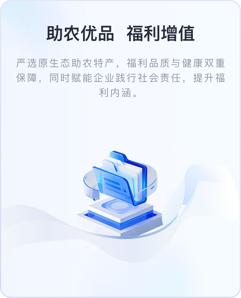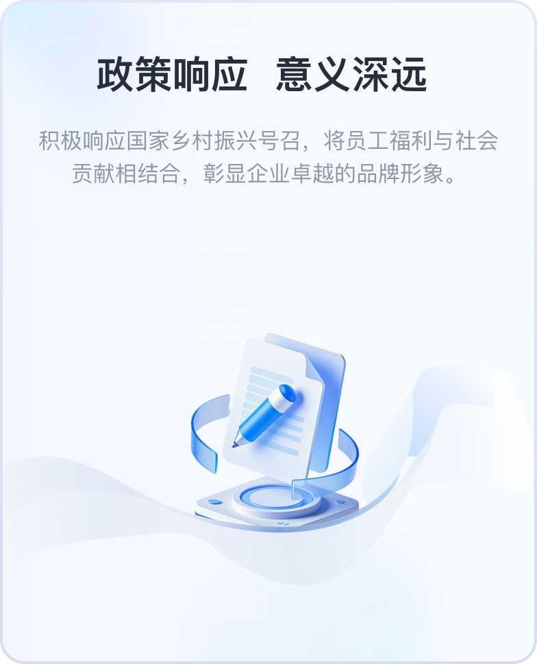- 平台积极响应国家乡村振兴政策,严选优质助农特产,将原生态的健康产品直达企业员工,让福利发放更具社会意义。