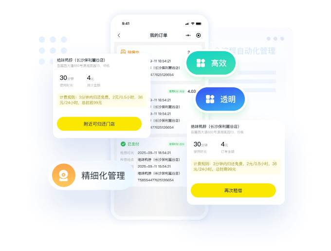 - 支持订单从生成到归还的全流程自动化处理,覆盖多种业务场景。
