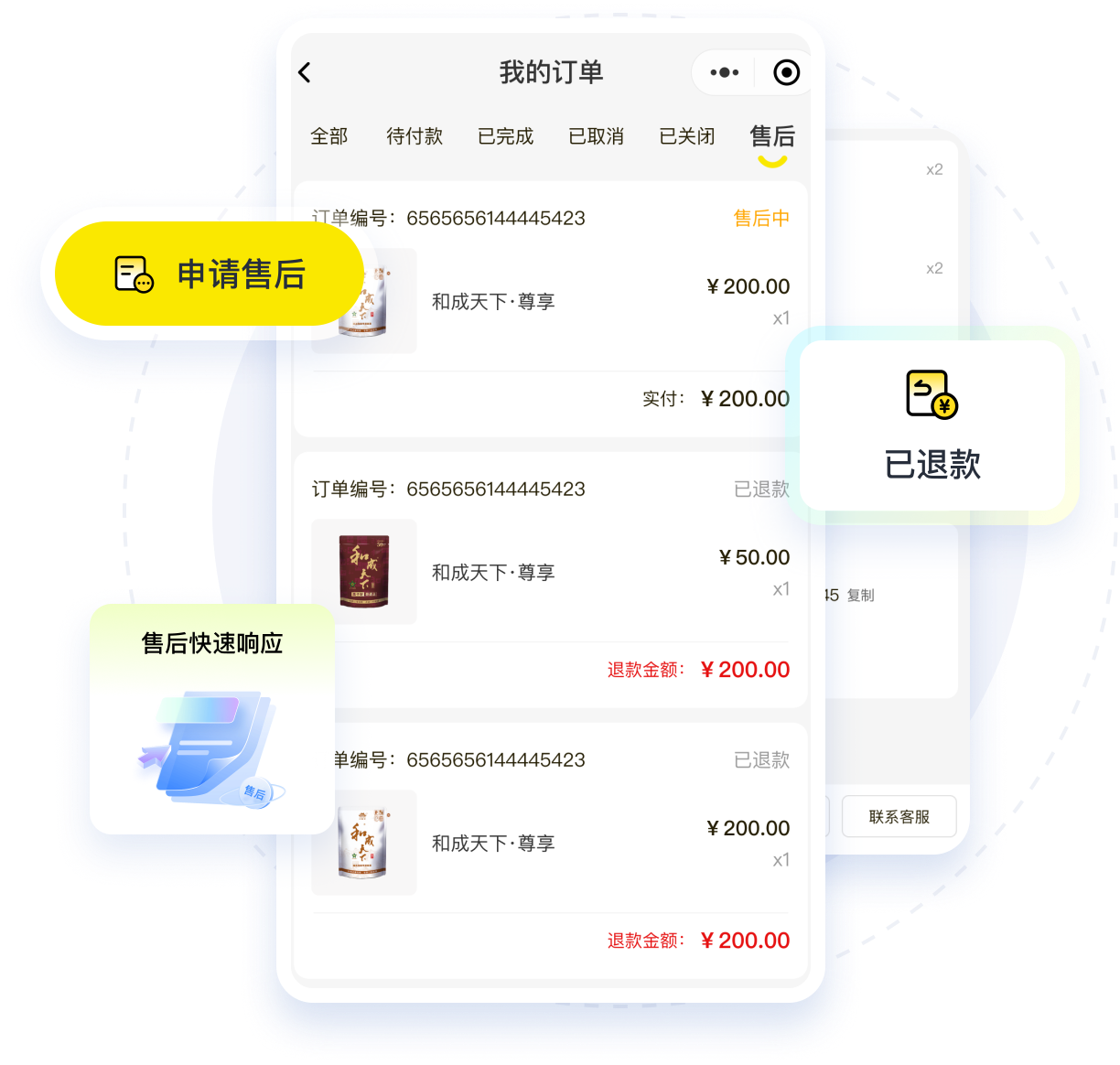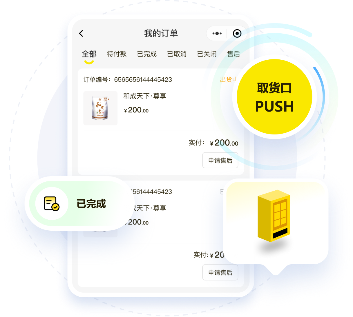 - 消费者可通过小程序发起售后申请(如取货失败、商品问题)