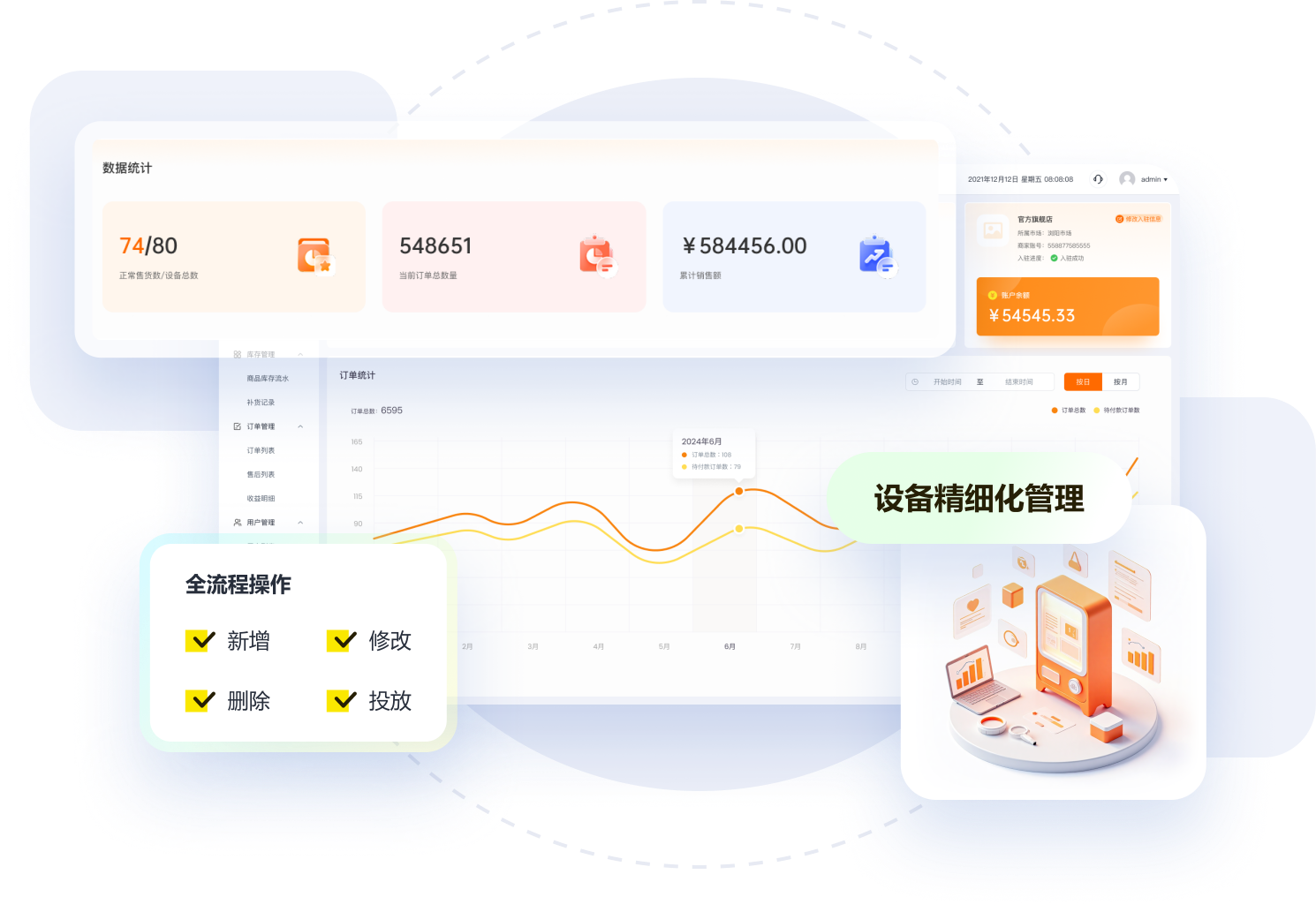 - 支持查看设备实时状态(库存、销量、故障报警)