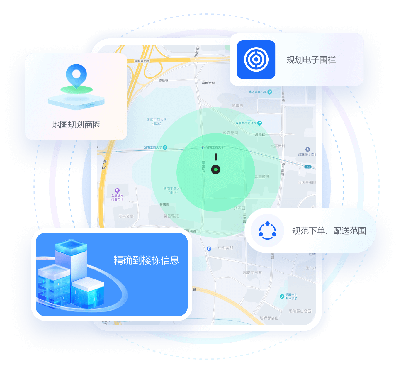 - 可在地图规划商圈、电子围栏以及楼栋信息