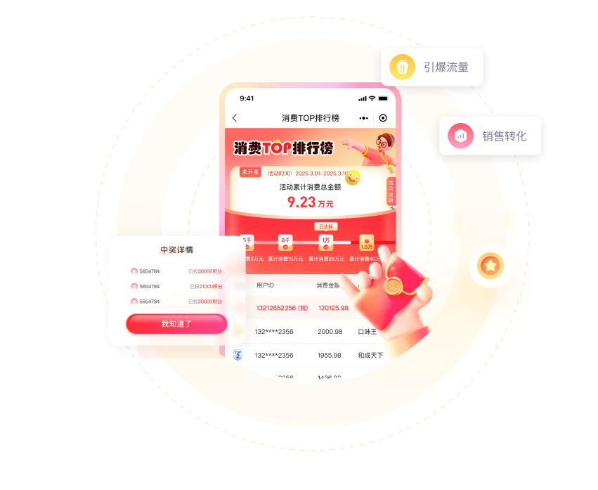 - 提供丰富营销工具与活动,助力引爆流量,提升销售转化